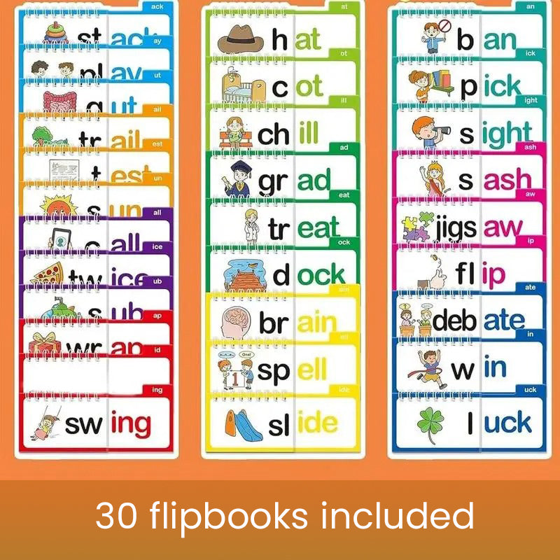 Sorylia Flip & Read uses word families and patterns (e.g., -at: cat, hat, bat), so kids see the structure repeated while varying the beginning letters. This helps them decode faster, and build automaticity in reading.